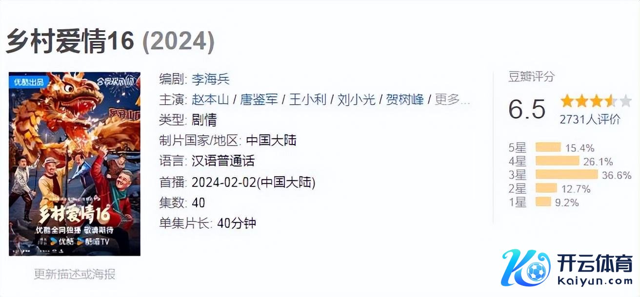 然而越到后头越败兴,收视也越来越低,评价也越来越不好,《乡村爱情6》在豆瓣评分独一6.5。