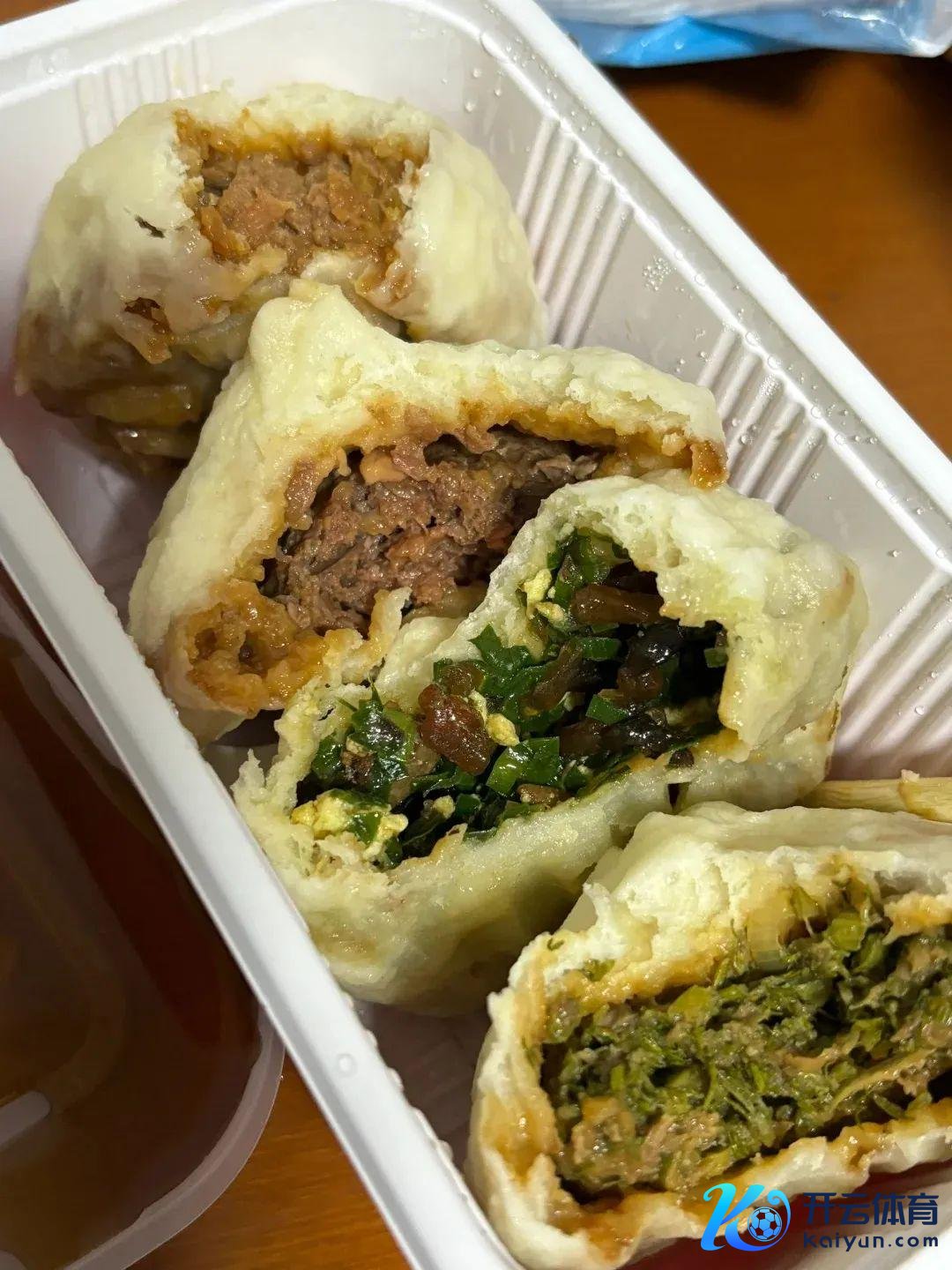 包子是肉眼可见的皮薄馅儿大!现蒸现上桌,外表是半发面,被汤汁浸出来的油润特馋东说念主肉香葱香,配碗炒肝儿太圆满!