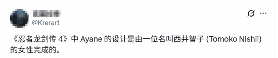 发布日期:2025-11-21 07:17 点击次数:96近日异邦网友在推特上发现《忍者龙剑传4》中凌音的打算是一位叫作念西井智子 (Tomoko Nishii) 的女性打算者完成的。何况此前报谈玩家们对《忍龙4》中的凌音绝顶的赞好意思开yun体育网。不错看出如故有着优秀的女性打算者的。