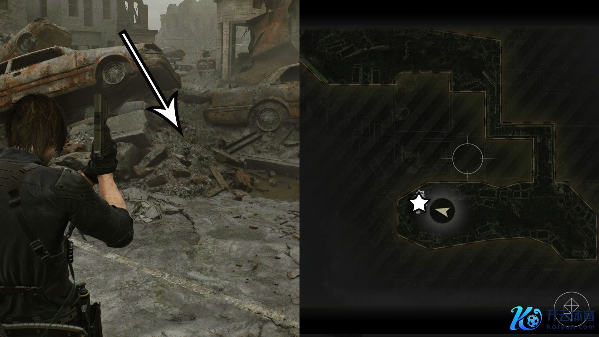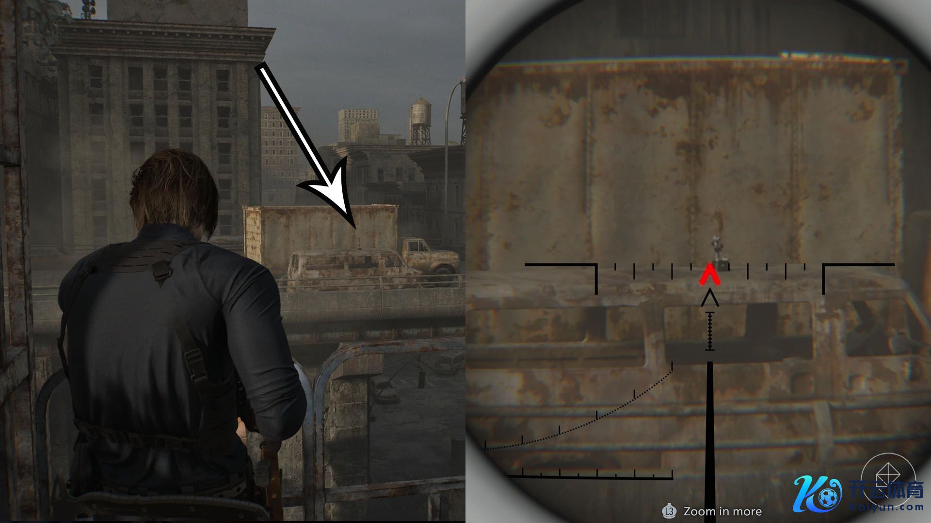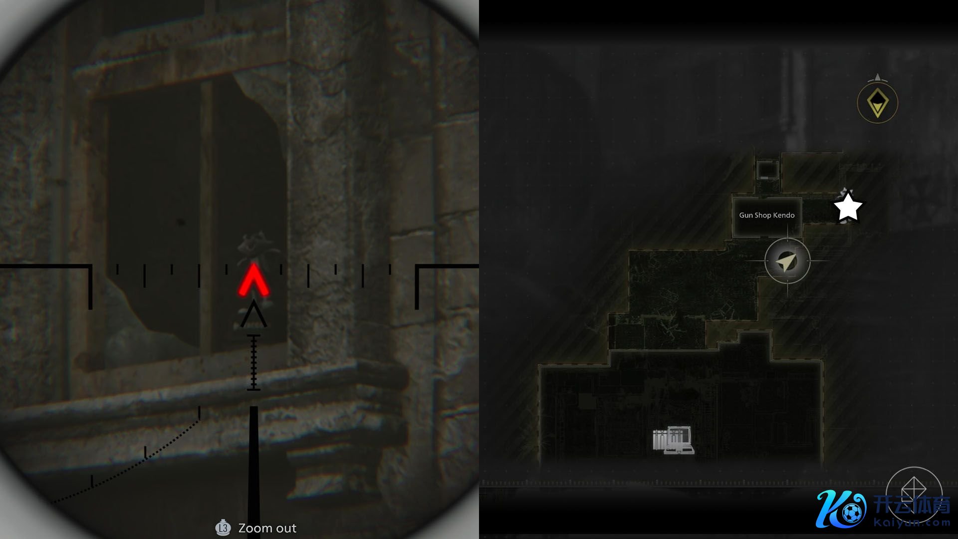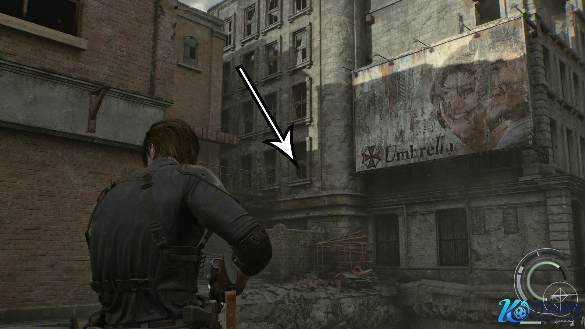 穿过肯多枪店(Gun Shop Kendo)后,你会插足一段过场动画,规矩后你会出当今室外。穿过那栋小开发并左转,会看到一条冷巷。顺着路走,会看到前列开发上的告白牌。