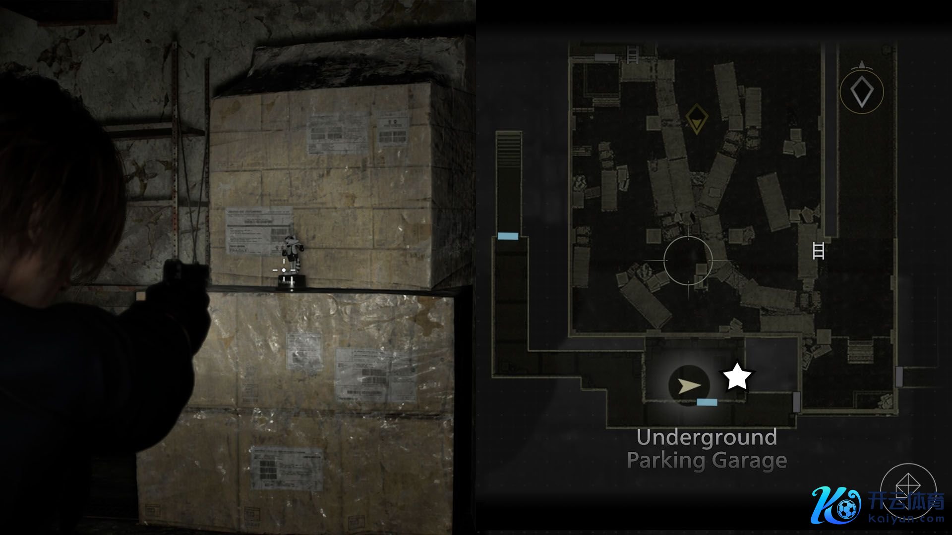 离开装卸船埠(Loading Dock)并穿过走廊后,你会遭受一段通往低层的楼梯。不才去之前,向右看,你会发现这个浣熊先生雕像就在绿色板条箱顶部。