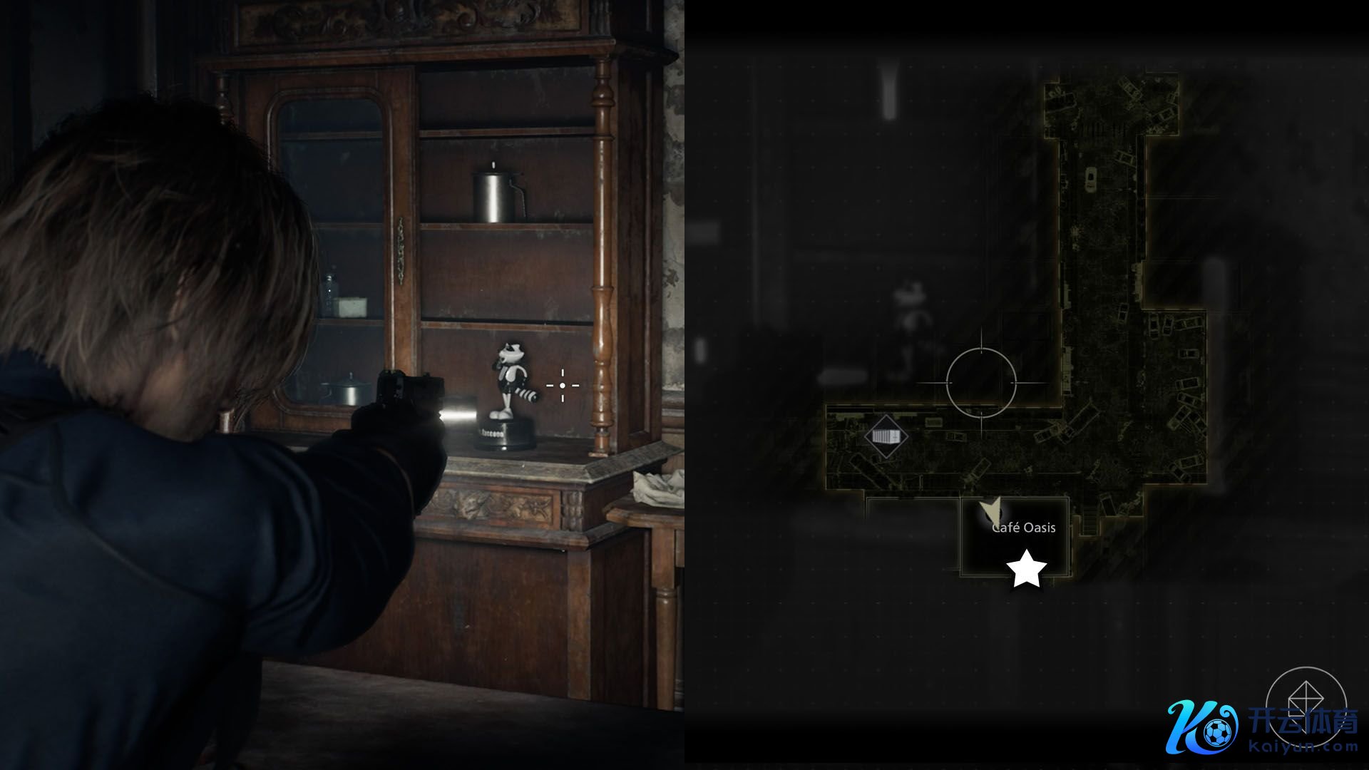 里昂到达浣熊市后不久,插足紧邻阿普尔盖特旅社的绿洲咖啡馆(Café Oasis)。在店内的柜子里不错找到一个浣熊先生。