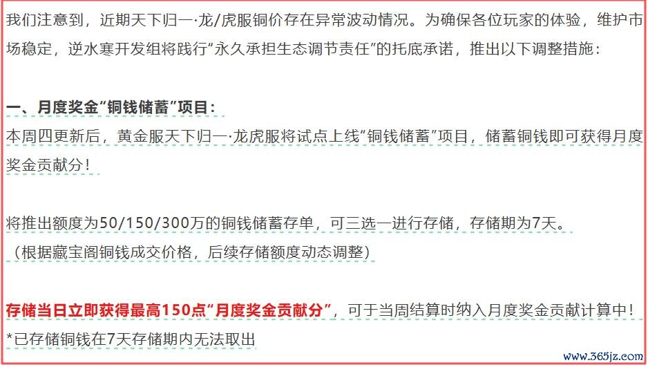 况且,合资东说念主权略也会笔据游戏中的及时动态进行弯曲和升级,比如为了维稳游戏中虚构货币的价值,本周四更新后,在黄金服的经济践诺特区就会试点上线一项“铜钱储蓄”的状貌,惟有玩家储蓄铜钱存单,就能赢得阅读奖金孝敬分,最高额度为300万铜钱,可为玩家提供最高150点即150元东说念主民币的月奖积分。