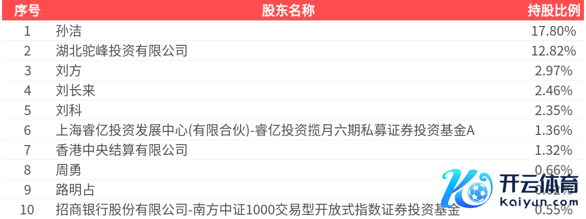 公司鼓舞户数为7.16万户,前十大鼓舞握股数目为5.03亿股ky体育官网登录入口网页版,占总股本比例为42.90%,前十大鼓舞握股情况如下: